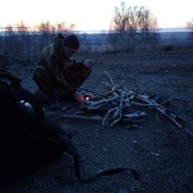 Czas mija bardzo szybko i równie szybko robi się ciemno. Próbujemy zebrać drzewo na ognisko. A właściwie to ja zbieram :) Sasza nie radzi sobie z rozpaleniem ogniska i przygotowaniem drzewa a nasz chiński kompas właśnie odmówił posłuszeństwa. To zaskakujące jak szybko Natura weryfikuje czy przedmioty, które Cię otaczają, przydadzą się do czegoś czy nie. Drzewo jest albo suche albo mokre. Noc zapada według ustalonego porządku i raczej nie poczeka na Ciebie, aż już rozpalisz sobie ognisko. Wszystko działa tutaj według ustalonego trybu i to Ty musisz się dopasować do niego. Nie na odwrót. To wyzwala w Tobie uczucie pokory i wrażenie, że jesteś tylko malutkim trybikiem, względem potęgi naury.