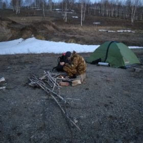 Deski, kawałki drewna i wszystko,to co znajdujemy na zewnątrz, leży już koło pieca. Przydaje się moje wiejskie doświadczenie z rozpalaniem pieca. Po jakichś 30 min ogień już trzeszczy w piecu. Siedzimy przy ogniu i chociaż chałupa ma dość przestrzeni, my ciśniemy się przy piecu i nikt z nas nie myśli, aby zmienić miejsce, choćby o centymetr. Wyciągam kiełbasę kupioną w sklepie i zaczynam ja podpiekać nad ogniem, Sasza szykuje herbatę. Boże jakie luksusy! Dodatkowo znajdujemy materac, na którym spędzimy noc. Rano o 5 mamy autobus do Chakasji.