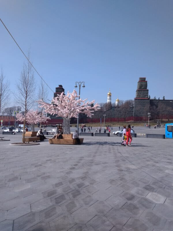 Po godzinie mam już dosyć łażenia po placu czerwonym. Szukam miejsca, gdzie mogę usiąść i moim oczom ukazuje się park z różowymi drzewami :)