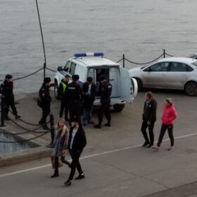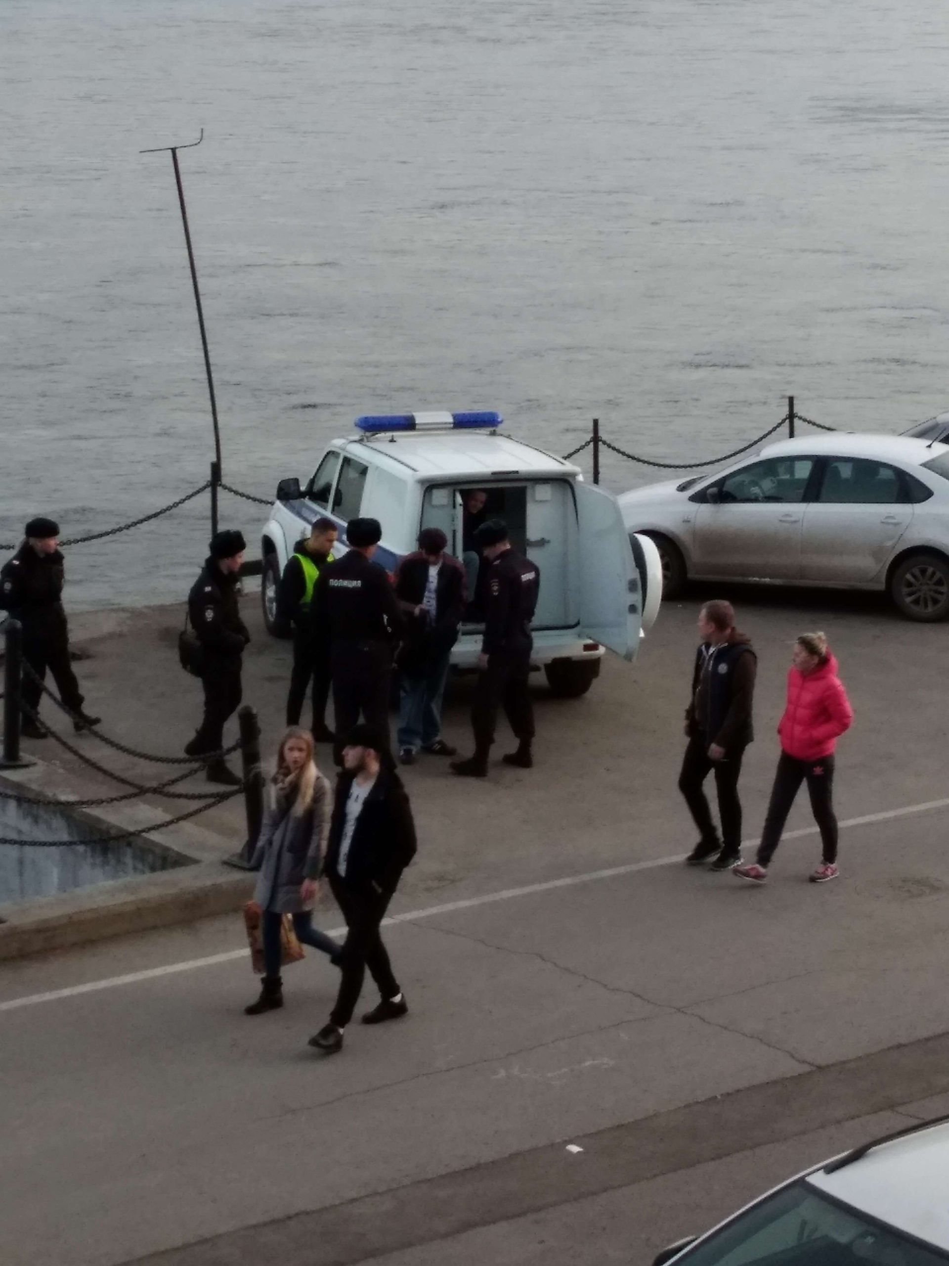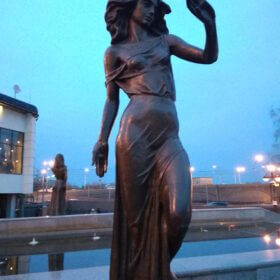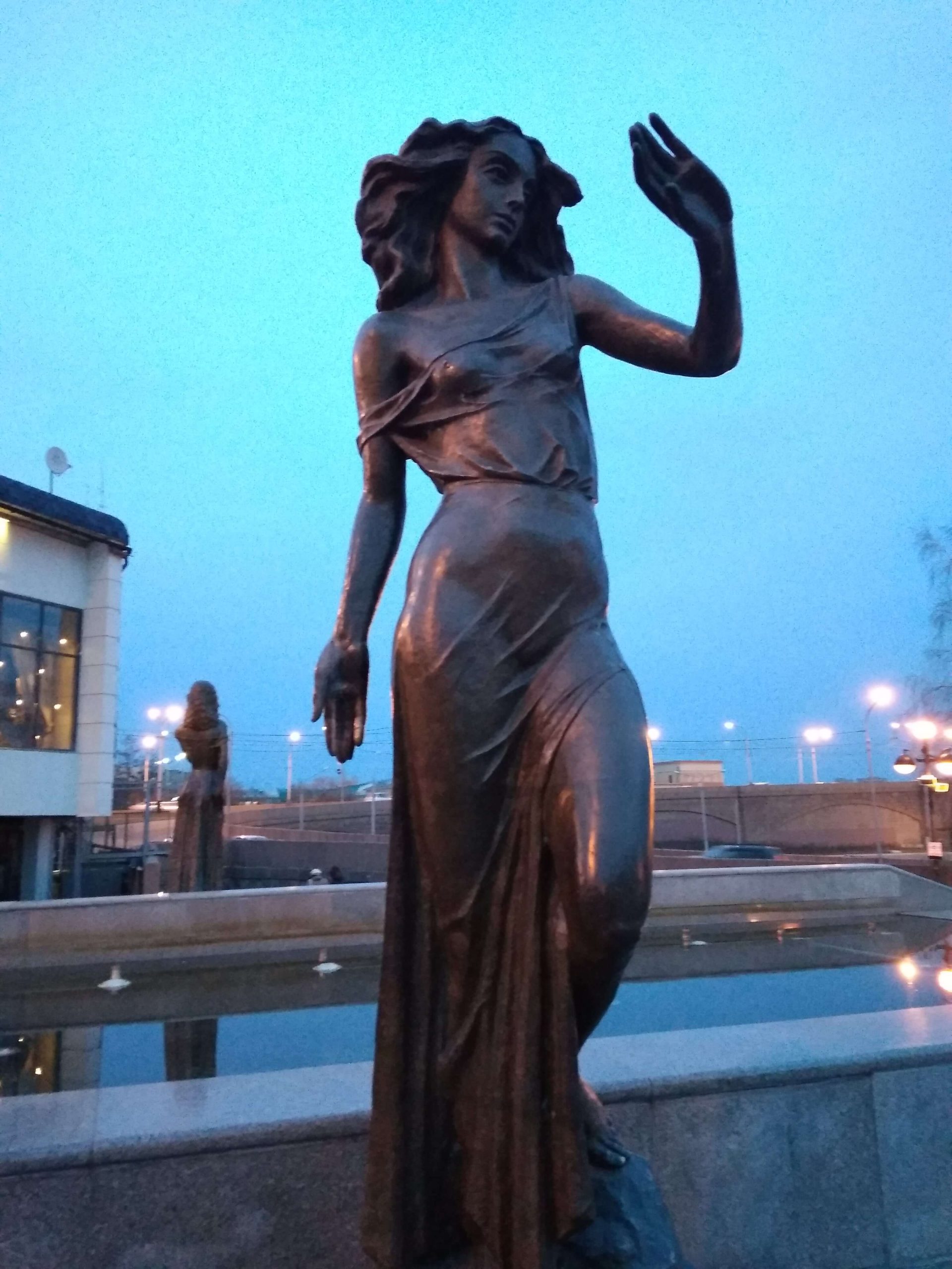 Okazuje się, że rzeka Jenisej ma dla Krasnojarska szczególny charakter, tak szczególny, że miasto upamiętniło ją nawet pomnikiem. A ten jest nietypowy. Przedstawia fontanną, która swój bieg rozpoczyna na szczycie schodów. To tak jakby po pomniku smoleńskim (niestety nie mam w głowie, żadnego innego, bardziej popularnego porównania) spływała woda. Pośrodku tej fontanny stoi.rzeźba mężczyzny, która przypomina posturą, jakiegoś greckiego boga. To Jenisej, który wygląda tutaj niczym Zeus. Obok niego stoją piękne boginie, symbolizujące jego dopływy.